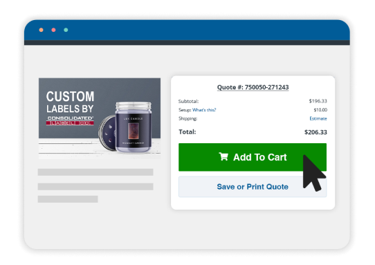 We make the label ordering process as easy as possible. Getting started on a new order? Quickly price a wide variety of labels with our online pricing tool. After your purchase, easily track your order and payment history, update payment info, make changes to and approve label designs, and more with our online support tools.